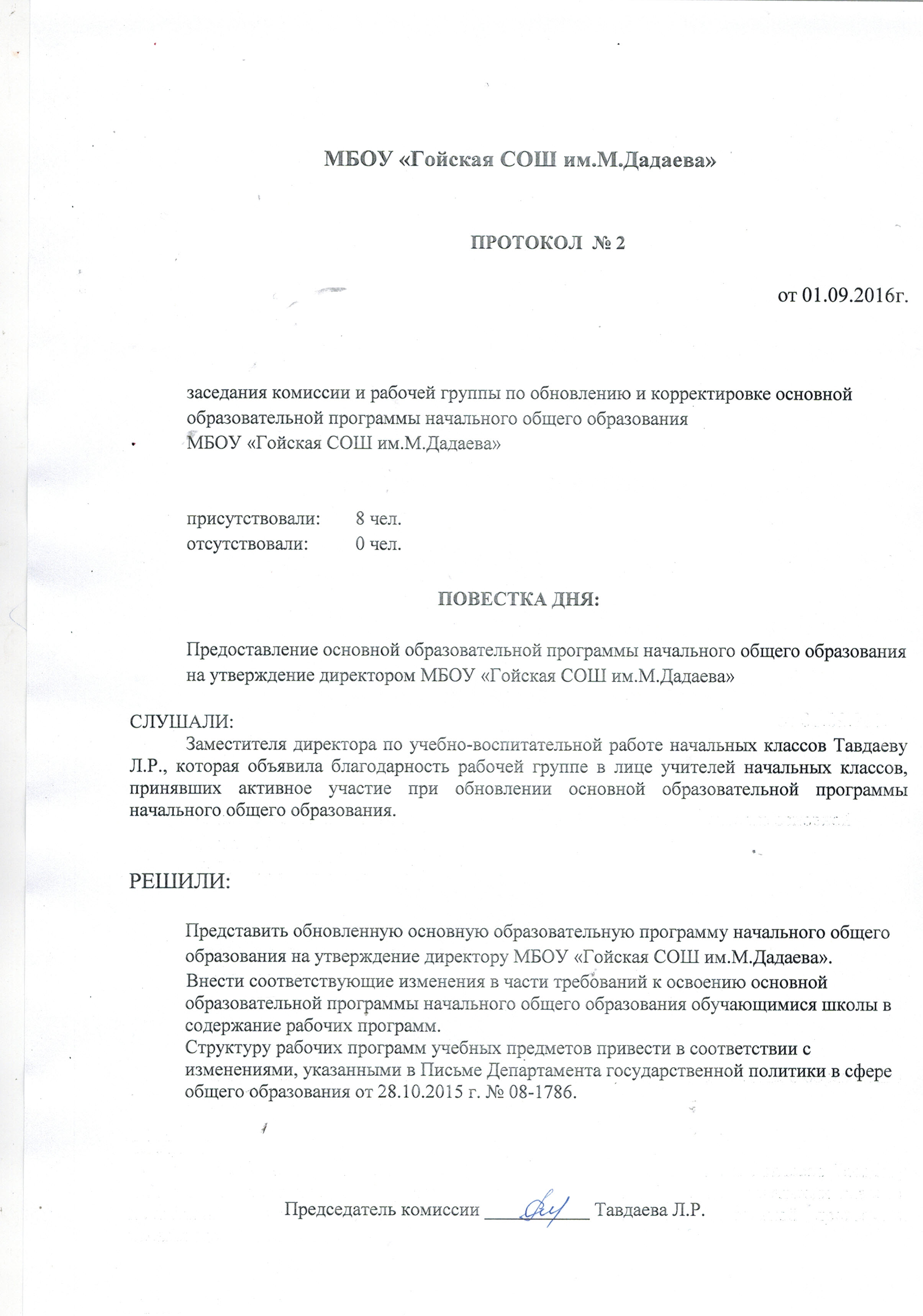 Положение о разработке, принятии, утверждении и внесении изменений в основные образовательные программы начального общего, основного общего и среднего образования от 29.08.2016г.