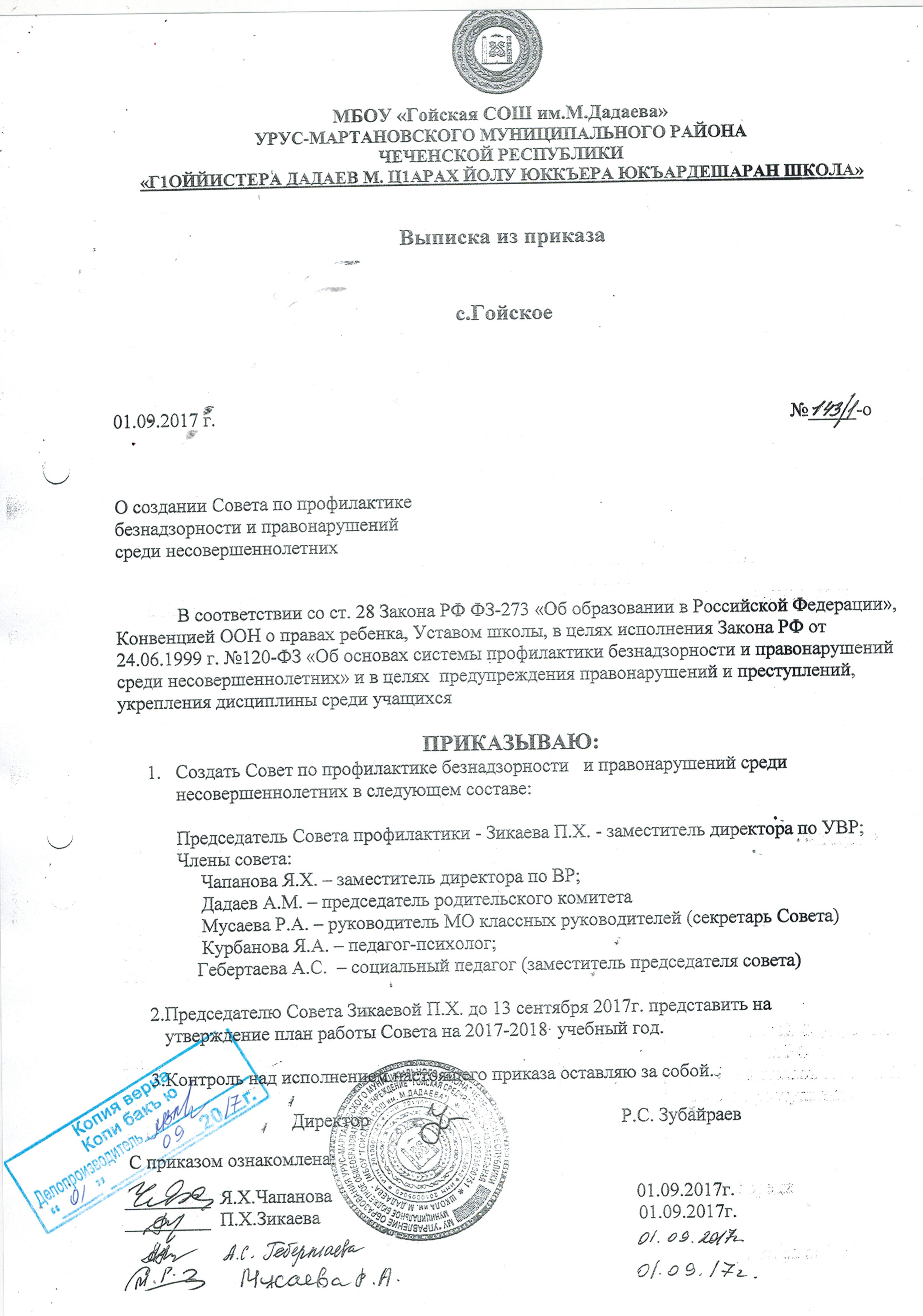 Приказ об утверждении Порядка учета детей, подлежащих обучению по образовательным программам начального общего, основного общего и среднего общего образования на территории Урус-Мартановского района Чеченской Республики