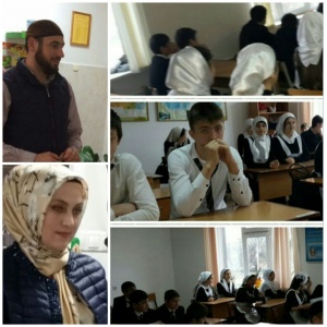 19.10.201619 октября главный специалист-эксперт отдела территориальных представителей министерства ЧР по делам молодежи Л. Устраханова и педагог по духовно-нравственному воспитанию Б. Юсупов провели профилактическую бесебу о культуре поведения и внешнем виде молодого человека с учащимися 7-8-ых классов.