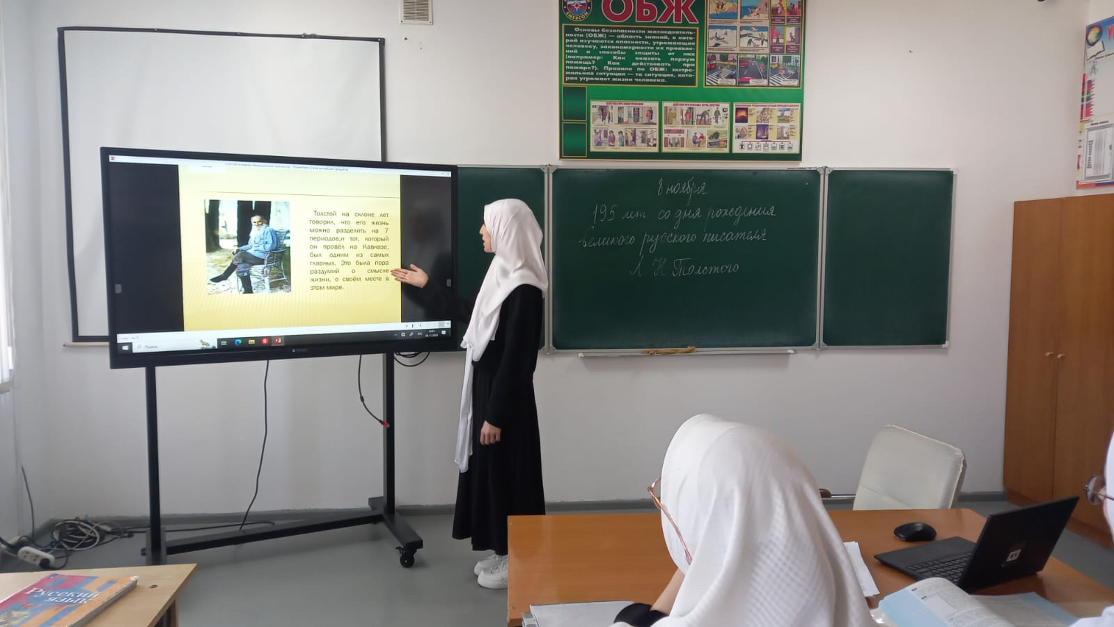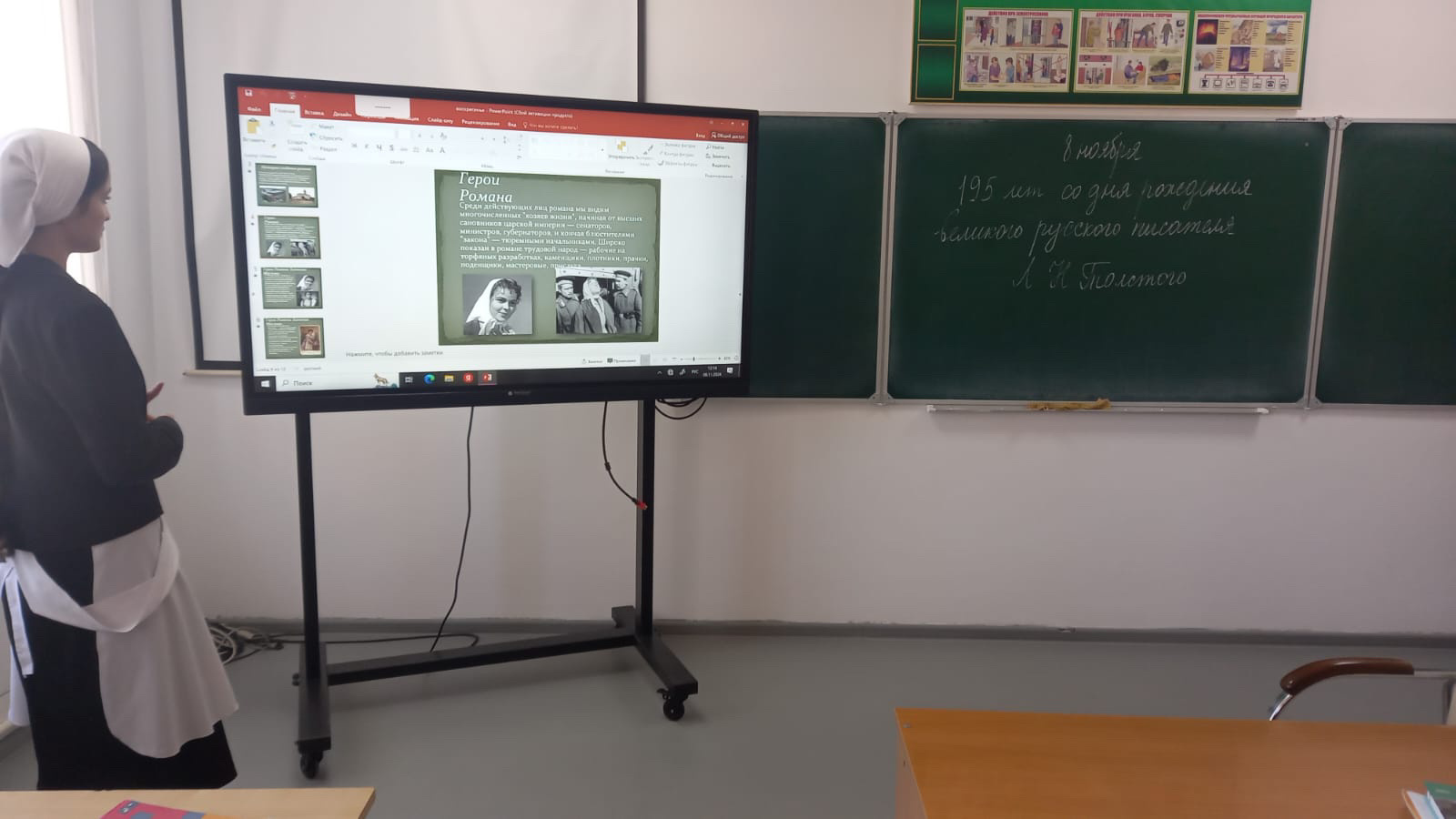 08.11.2024 года в МБОУ "Гойская СОШ им.М.Дадаева" с целью воспитания любви и интереса к русской литературе, Отечеству на примере произведений Л.Н.Толстого обучающиеся 11 класса провели мероприятие, приуроченное Дню рождения великого писателя.