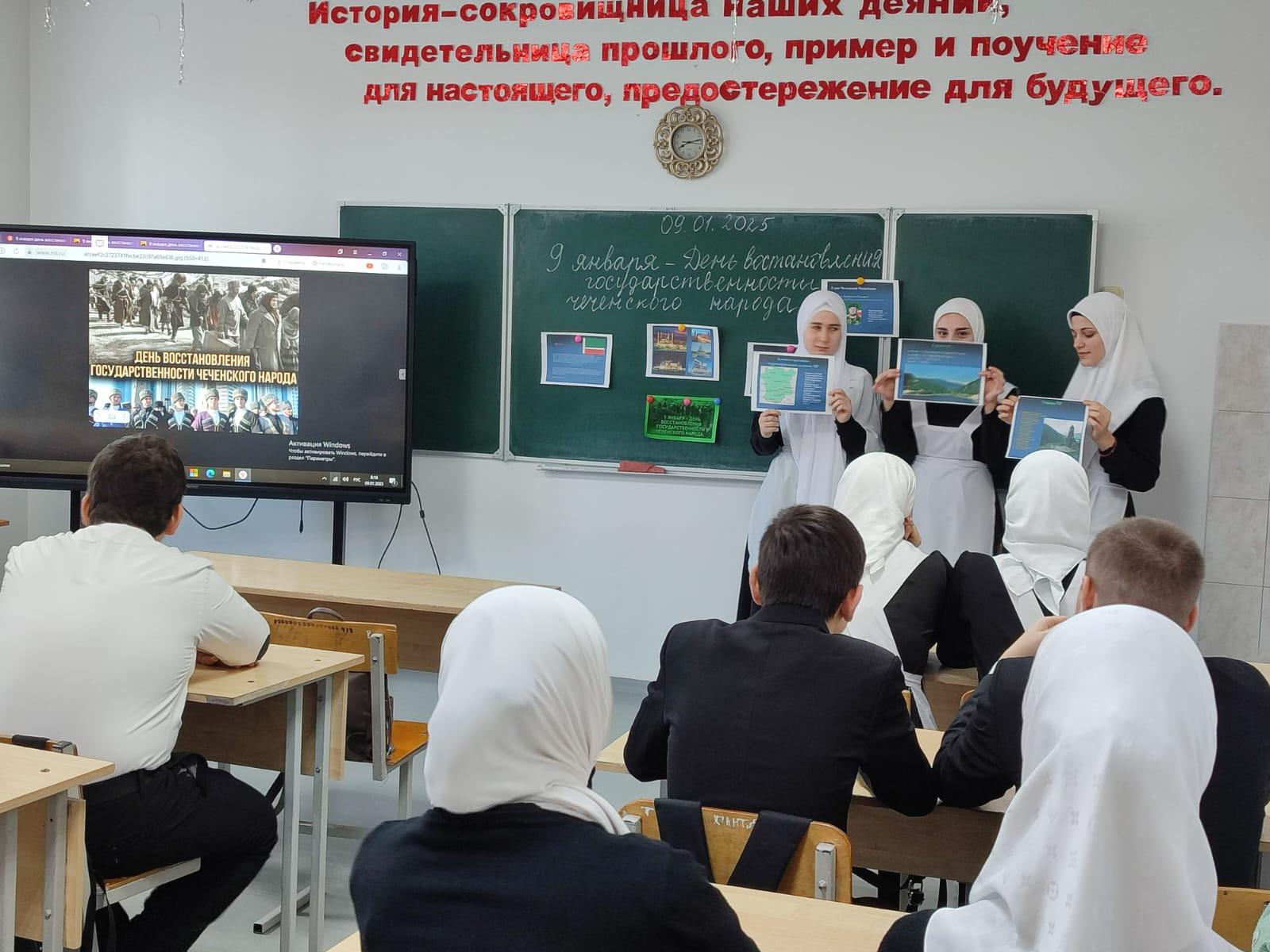 Согласно плану воспитательной работы в МБОУ «Гойская СОШ им.М.Дадаева», с целью привития любви к Родине, к своему народу, формирования интереса к своей истории, были проведены классные часы, приуроченные Дню восстановления Государственности ЧР.