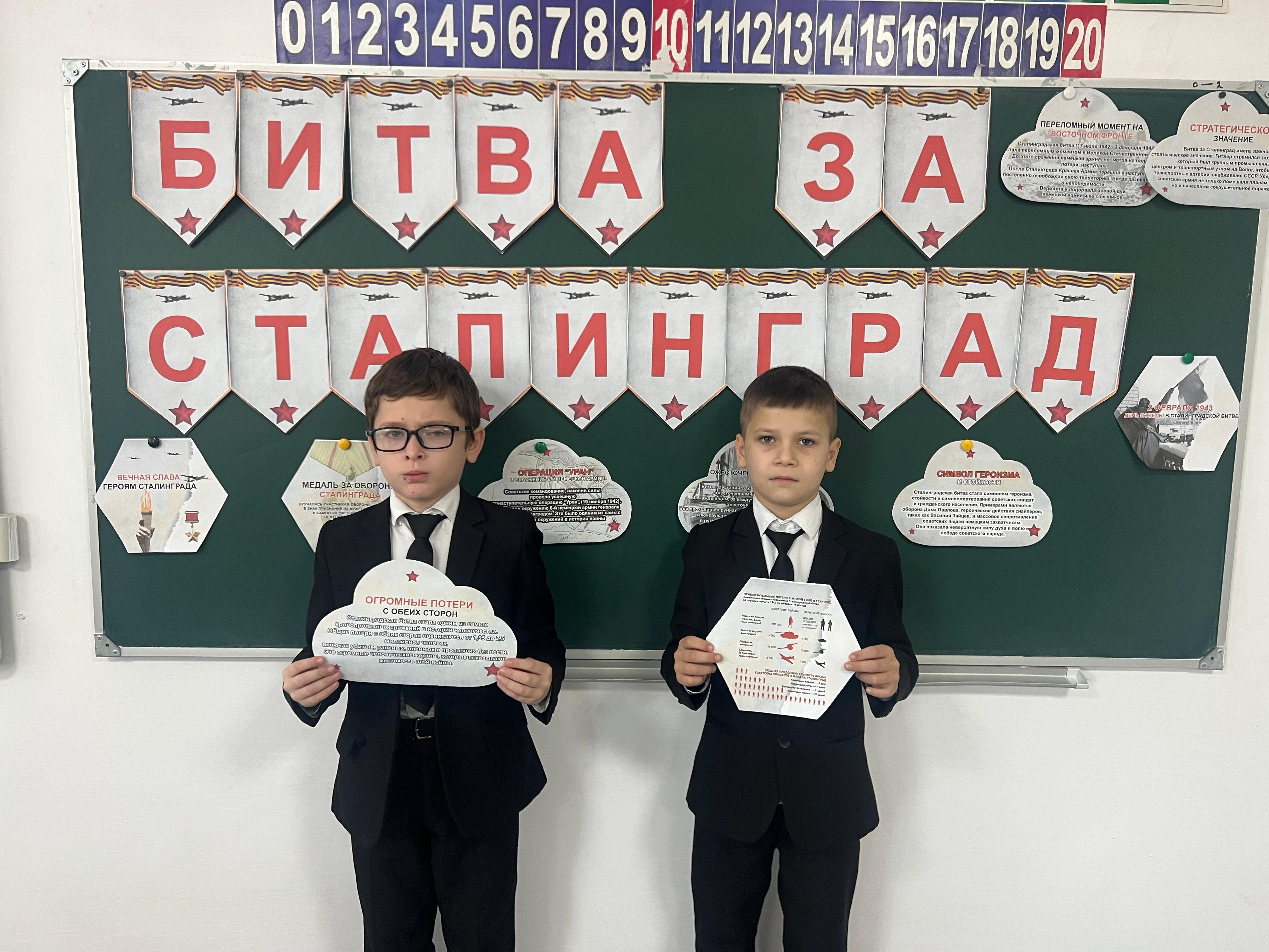 Ребята узнали о важных периодах Сталинградской битвы, о ее историческом значении, о памяти тех грозных лет, о великих подвигах защитников Сталинграда.