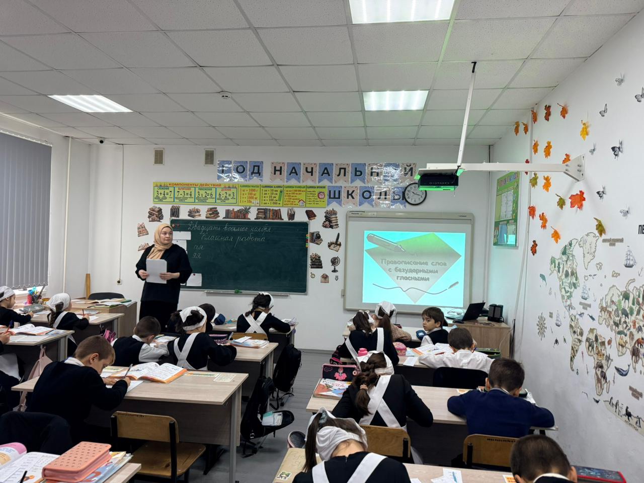 Во 2 Б классе был проведен открытый урок по теме «Безударные гласные в корне слова», приуроченный в план проведения мероприятий к Году начальной школы.