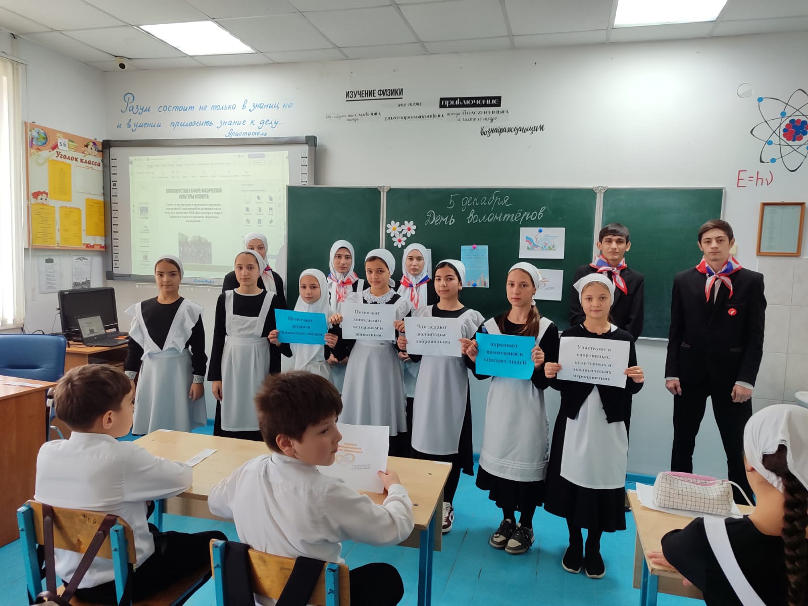 В преддверии дня Добровольца, который отмечается 5 декабря, Бакаева Л.В. совместно с участниками Движения Первых провела классный час для учеников 5-х классов . Ребята рассказали учащимся школы, что такое добровольчество, когда оно появилось и почему так важно делать добрые поступки. Ребята увлеченно слушали, затем рассказали, какие добрые дела они совершали. По окончанию классного часа, ученики решили пополнить ряды добровольцев