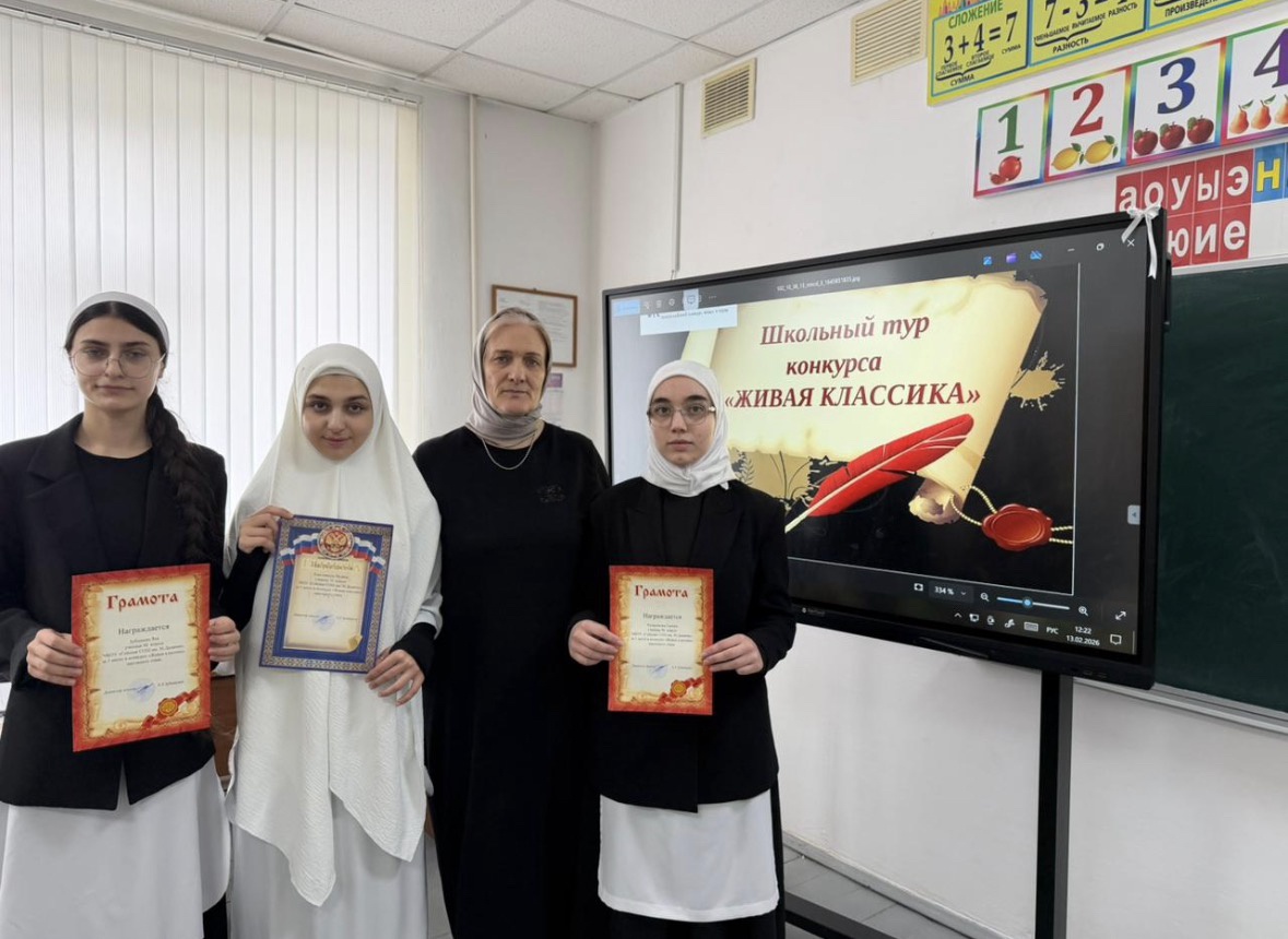 27.02.2026 года в МБОУ "Гойская СОШ им.М.Дадаева" проведен школьный этап конкурса "Живая классика". Целью данного мероприятия является повышение интереса к чтению у школьников. По итогам конкурса победителем стала ученица 10 класса, Хангошвили Медина. 2 место заняла ученица 9б класса, Хунарикова Самира и 3 место - ученица 86 класса, Зубораева Яха.